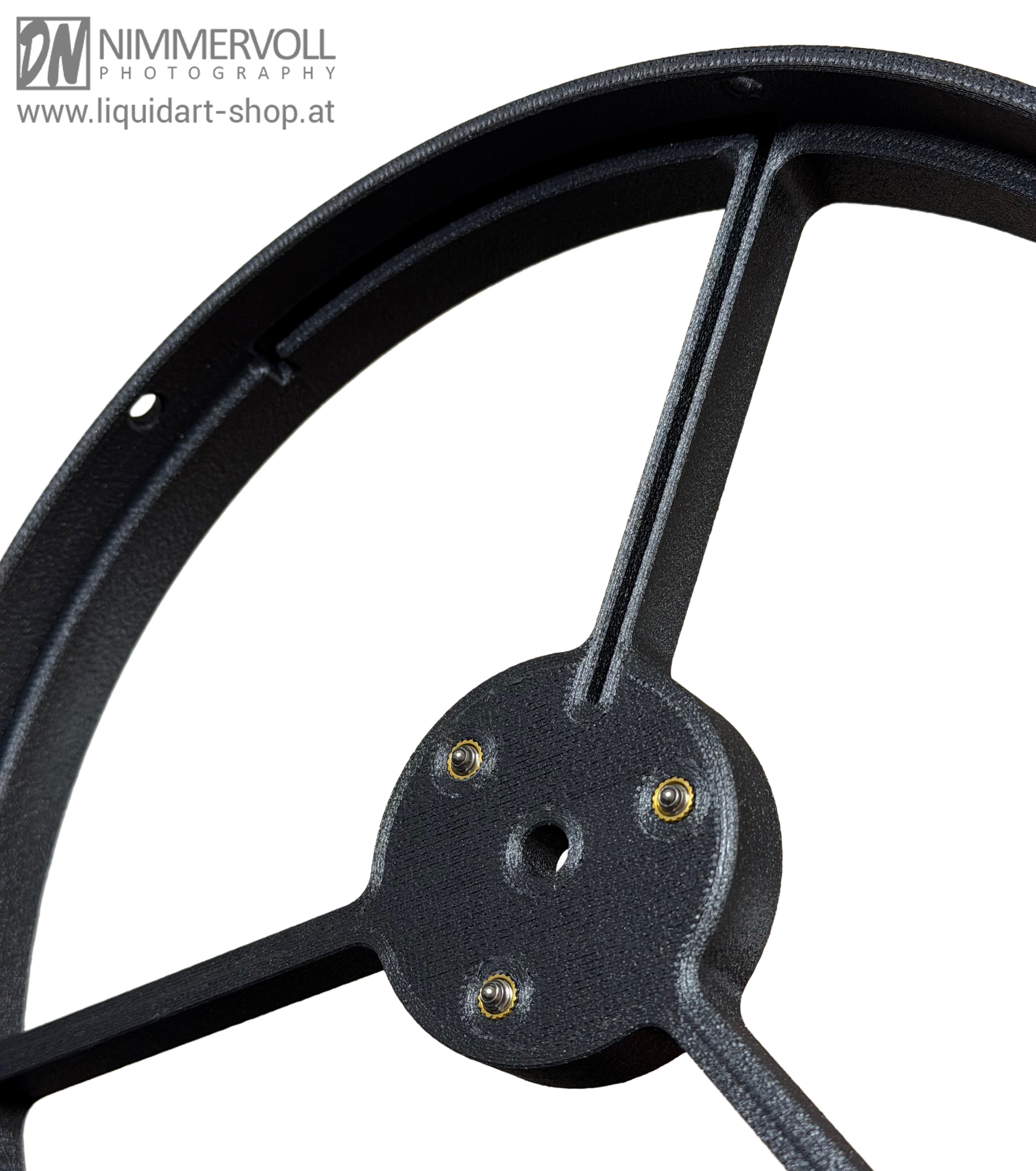 Diese spezielle Geometrie ist mit herkömmlicher CNC-Bearbeitung in Aluminium nur sehr schwer umsetzbar. Zusätzlich besitzt das PPS-CF Material eine leicht raue, matte Oberfläche, die unerwünschte Reflexionen weiter reduziert.